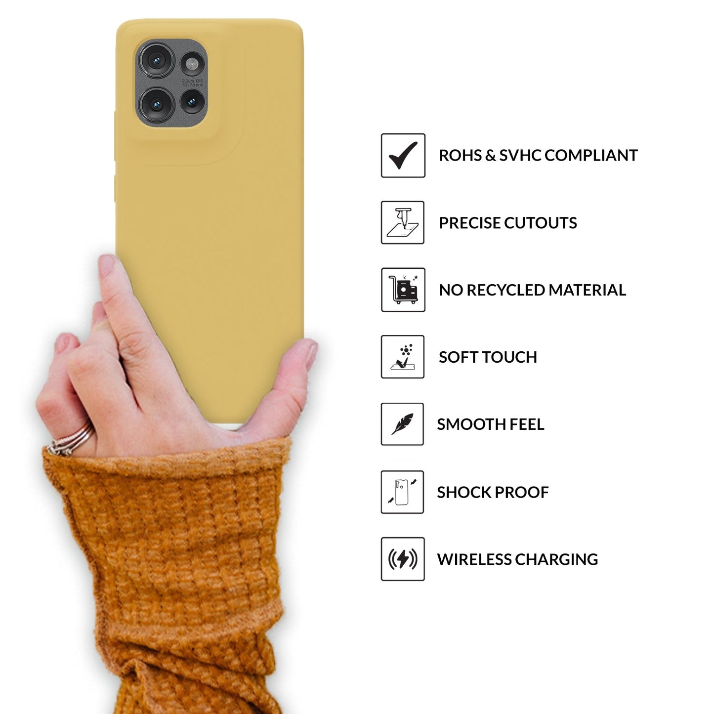 This mobile cover is 100% compatible with Standard chargers and headphones used with Moto Edge 50 5G.