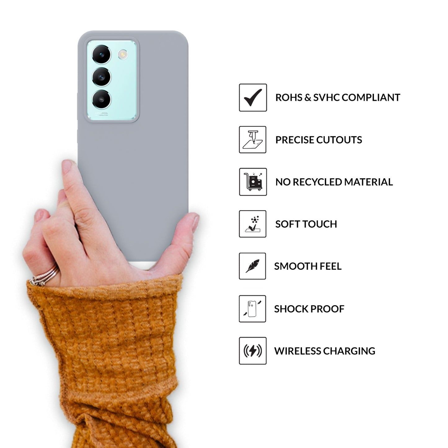 Soft Microfiber Lining provided on the inner wall of the Liquid Silicon / Liquid Silicon Magsafe Back Case prevents scratches on the back of your VIVO T3 5G.